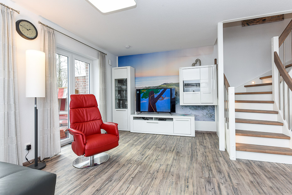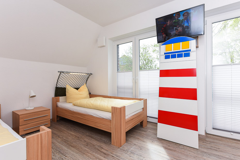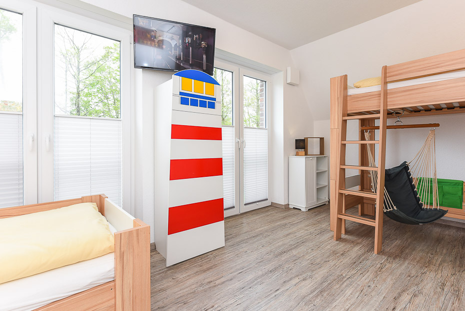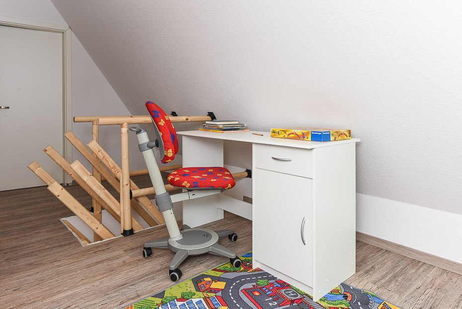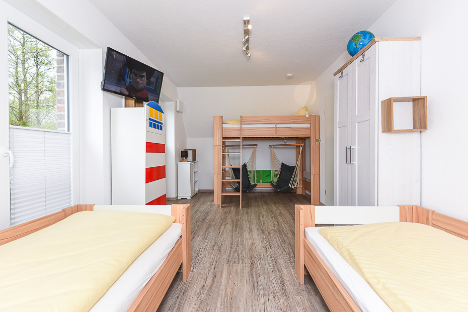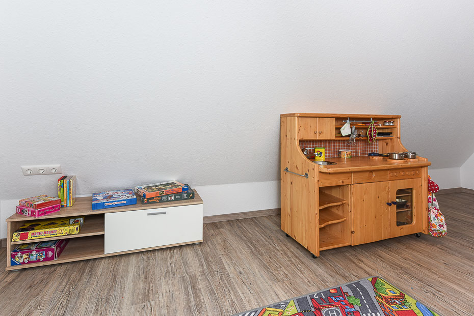 Im Dachgeschoss befindet sich ein Spielzimmer für die Kinder sowie ein separater Fernseher mit einer Playstation 4. Auf der überdachten Terrasse befindet sich zusätzlich noch ein Strandkorb.