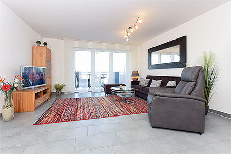 Vom Balkon aus haben Sie einen herrlichen Blick über den Deich hinweg auf den Bensersieler Hafen, auf die Nordsee und auf mehrere Ostfriesischen Inseln! Ihre Ferienwohnung ist von der Tiefgarage und allen anderen Eingängen des Hauses aus mit Fahrstühlen und völlig ohne Treppen erreichbar.