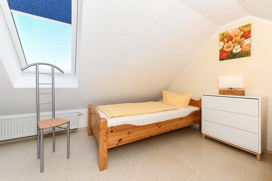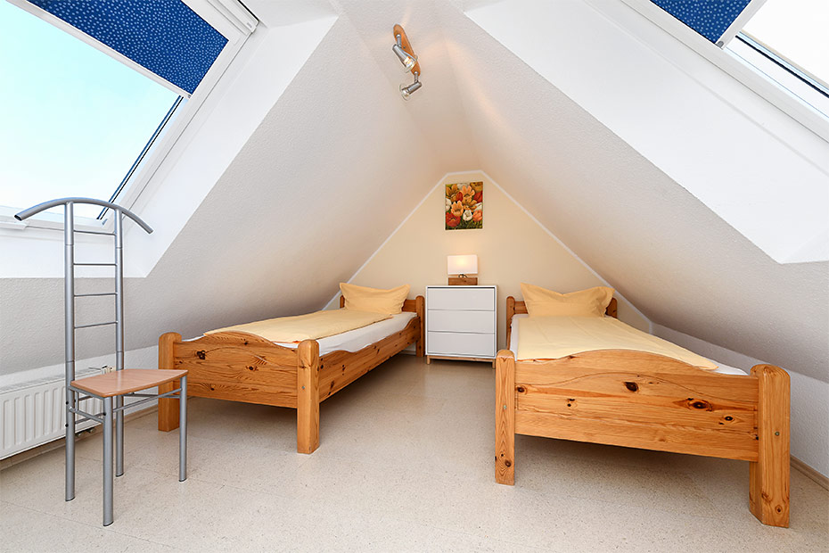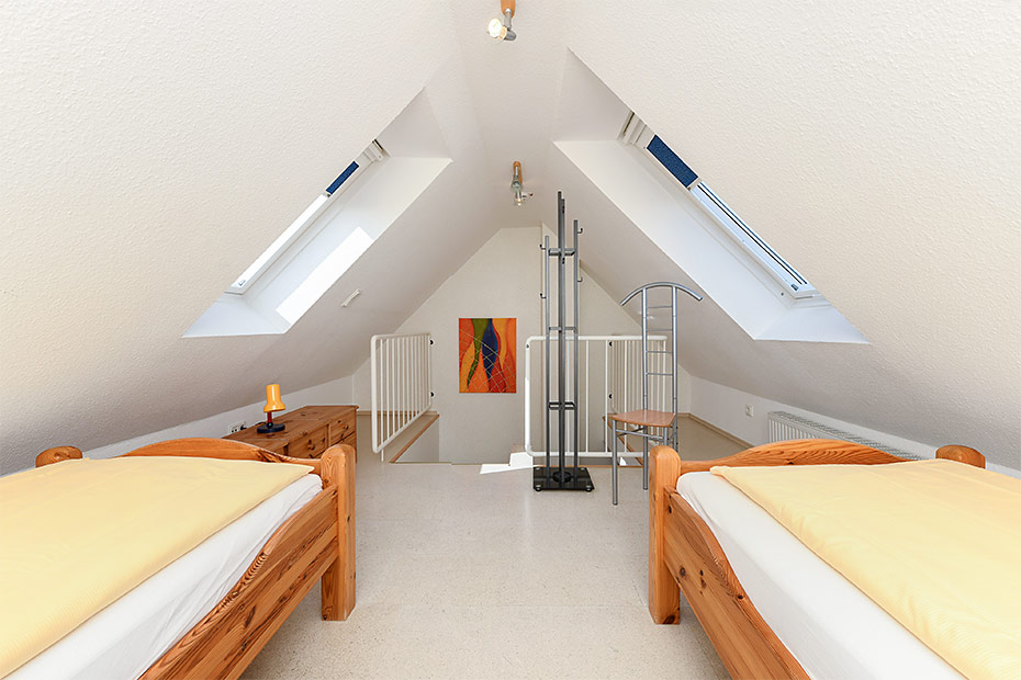 Die gesamte Wohnfläche ist über zwei Wohnebenen verteilt. Das zweite Schlafzimmer befindet sich im Dachstudio.