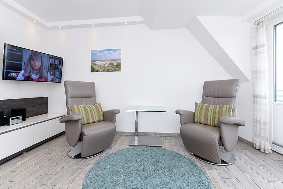 Vom Balkon aus haben Sie einen herrlichen Blick auf die Nordsee, Inseln, Strand und Hafen.